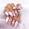 Dive into beachy romance with Pink Shore press-on nails. Featuring a blush-toned palette, this design blends shell textures with soft ombré tones. 3D floral accents and pearlescent shimmer evoke the serenity of sandy shores and sunny days. A dreamy set for summer escapes.