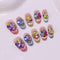 Indulge in the dazzling charm of Candy Spark press-on nails from Ersa Nails. Featuring a chic French tip with shimmering cat-eye effects, this design is adorned with vibrant candy-colored rhinestones for a playful yet glamorous finish. Perfect for turning heads at any occasion.