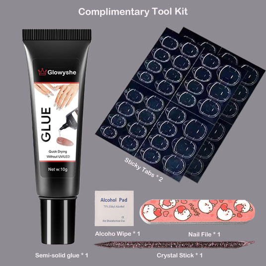 1 semi-solid glue — no UV needed, lasts 3–4 weeks.