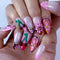 Add playful charm with handmade press-on nails featuring 3D cherry flowers and metallic beads. The acrylic design blends cute floral nail art with a touch of shimmer, creating a fun, reusable manicure. Perfect for those who love unique nail styles for spring, summer, or everyday wear.