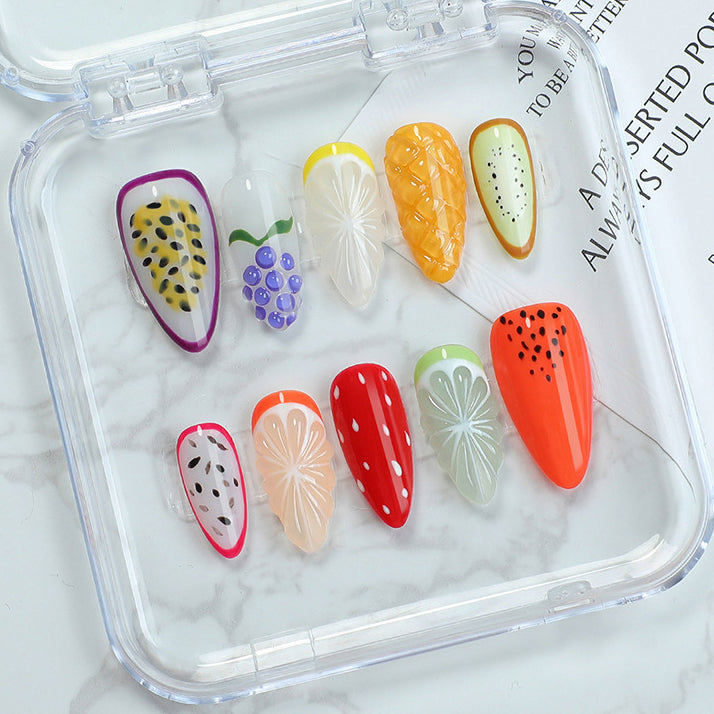 Brighten your look with Citrus Splash press-on nails from Glowyshe. Featuring vibrant 3D lemons and grapes in a colorful fruit-inspired design, these nails bring playful freshness and juicy charm. Perfect for summer vibes or anytime you want a fun, fruity pop of color.