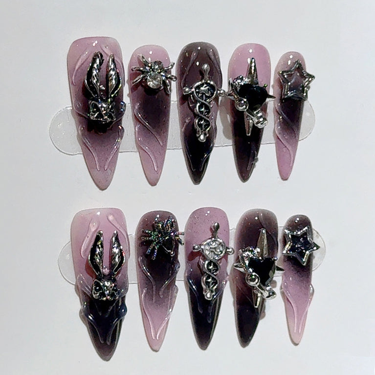 Turn heads this Halloween with Punk Spell press-on nails — a bold fusion of Y2K attitude, punk edge, and sweet-dark girl energy. Featuring statement designs in edgy colors, this set captures the spirit of rebellious glam. Perfect for cool girls who love a little mischief and a lot of style.