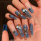 Unleash bold attitude with Denim Feline press-on nails from Glowyshe. Featuring a distressed denim-inspired design with edgy black accents, this set highlights playful black cat details that add a fierce, flirty vibe. The long length enhances the Y2K glam aesthetic, making it the perfect statement piece for trendsetters who love a daring, fashion-forward look.