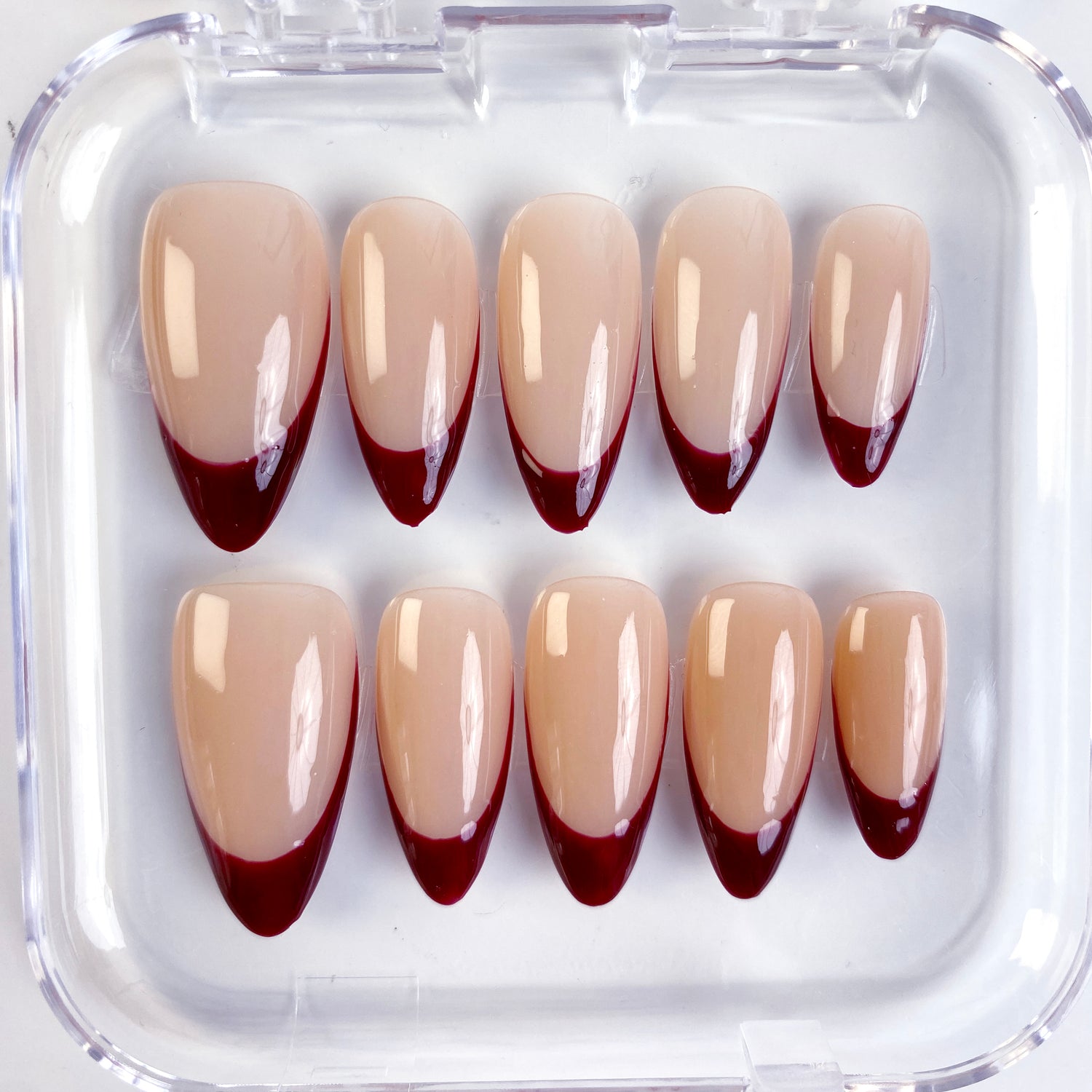 Classic meets bold with these handmade red French tip press-on nails. Featuring a timeless French manicure style with a vibrant red twist, these reusable nails are perfect for everyday wear or special occasions. Ideal for anyone searching for French tip nails, red nails, or chic handmade nail art.