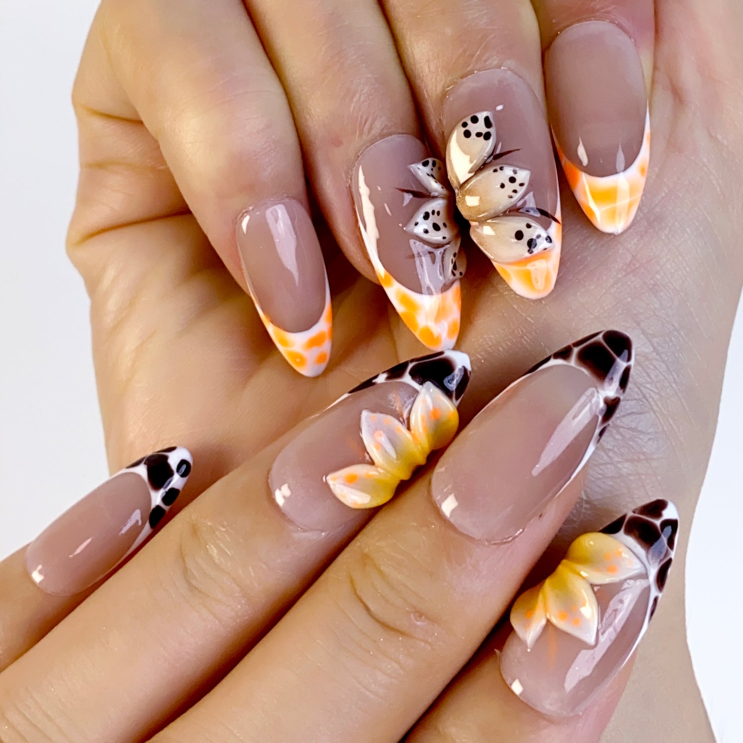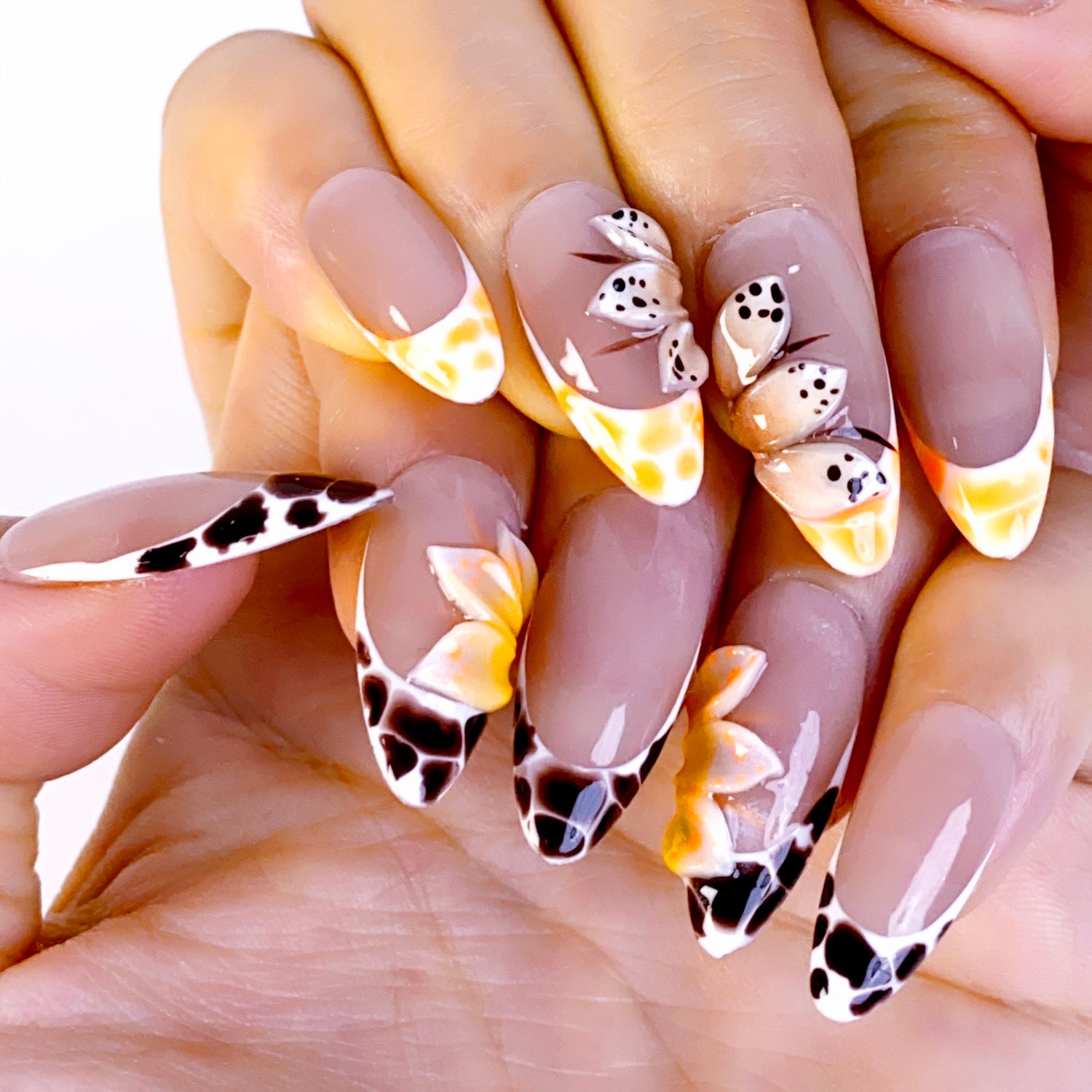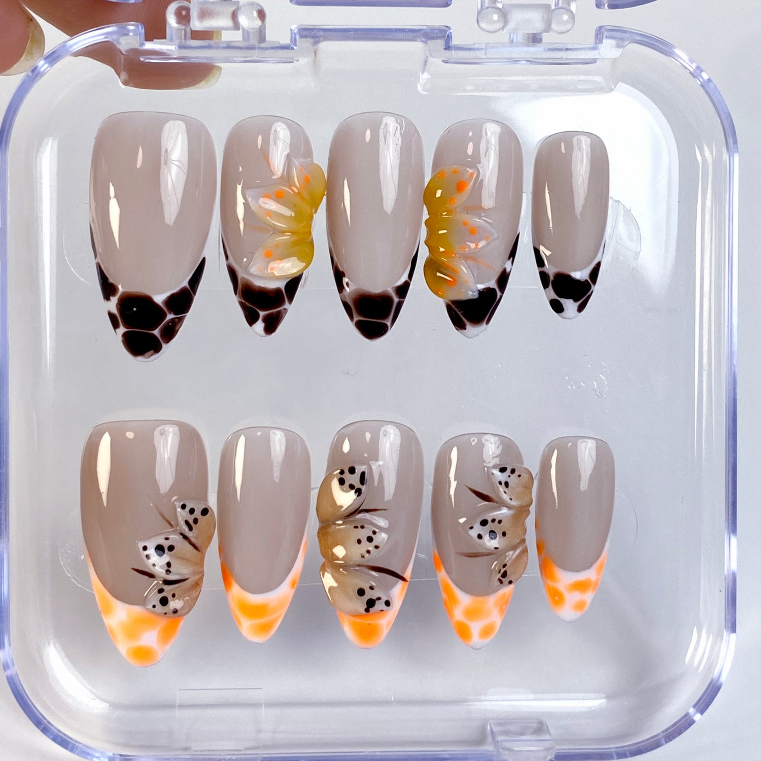 Turn heads with Serpent Rose press on nails. Combining rich red-brown tones, 3D floral accents, and bold snakeskin French tips, this handmade nail set brings edgy elegance to your look. Reusable, salon-quality fake nails perfect for fashion-forward fall outfits and statement nail lovers.