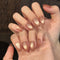 Step into sophisticated glamour with Icy Amber press-on nails from Glowyshe. Showcasing a chic iced-tea hue with shimmering cat-eye glass bead highlights, this design radiates timeless elegance. The luminous sparkle adds depth and allure, making Icy Amber the perfect accessory for modern, confident style.