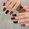 Embrace dark glam with these handmade press-on nails featuring black and red contrast tones, edgy studs, and bold spider accents. Perfect for Halloween parties, gothic outfits, and punk-inspired looks, these nails deliver a dramatic statement. Reusable and easy to apply, they bring striking gothic nail art to your fingertips.