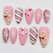 Get into the Christmas spirit with these Pink Snowflake Gingerbread Man Press On Nails. This handmade fake nail set features candy cane details and holiday-themed art for a festive winter manicure. Ideal for Christmas parties, these reusable gel nails add cute holiday charm to any look.