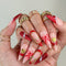 Celebrate the holidays with Festive Bow press-on nails from Glowyshe. Featuring classic red French tips with metallic accents and charming 3D bow details, this set brings joyful Christmas spirit to your fingertips. The medium almond shape ensures a chic and elegant look, perfect for parties, family gatherings, or holiday photos.