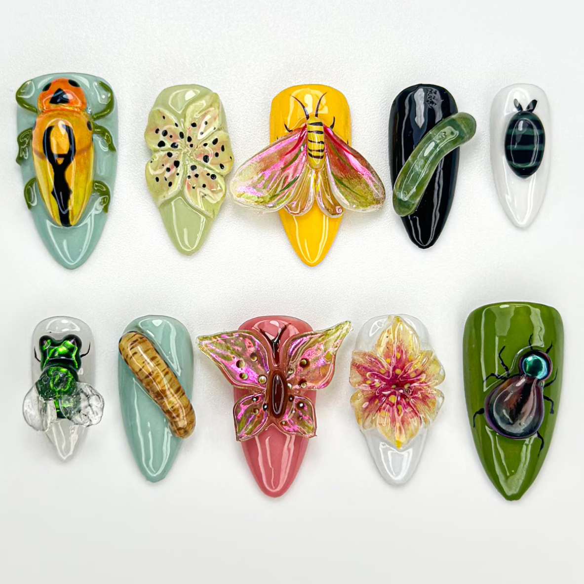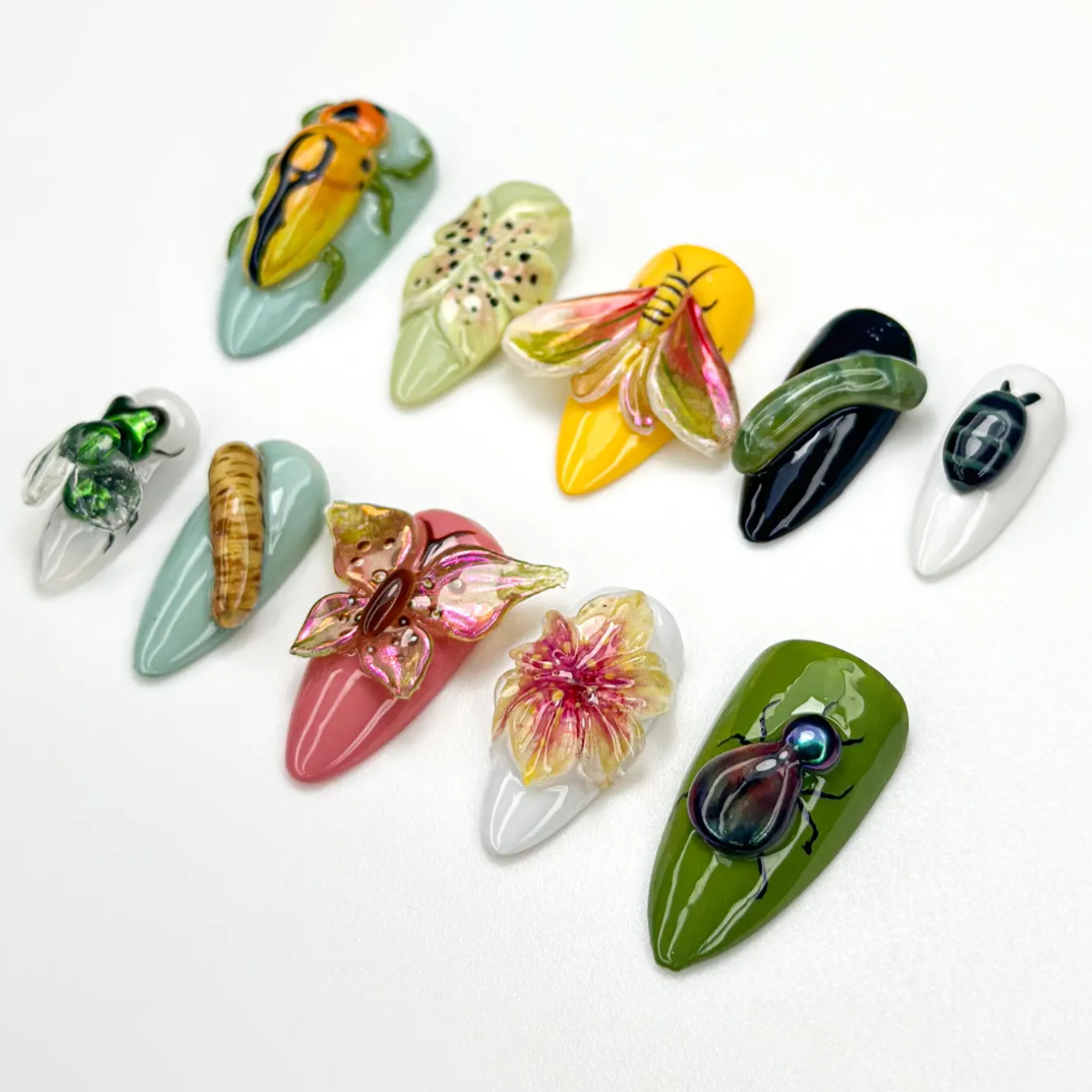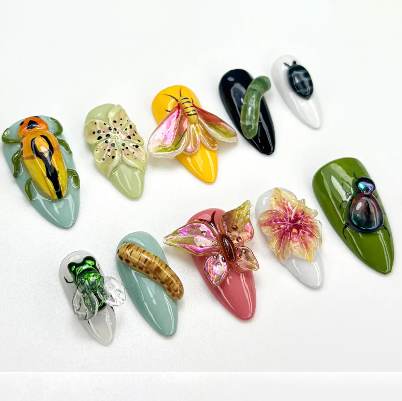 Bring a touch of the wild to your style with our Bug Garden Summer Press On Nails. Adorned with butterflies and beetles, this 3D insect nail art captures nature’s beauty. Ideal for spring or summer vibes, these handmade nails make a bold and artistic fashion statement.
