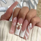 Capture the magic of winter with these pearl-accented press-on nails featuring a cozy knit design, delicate snowflakes, and elegant bows. Perfect for holiday gatherings, these winter-themed nails offer a chic and comfortable wear. Easy to apply and reusable, they’re a top choice for seasonal nail art.