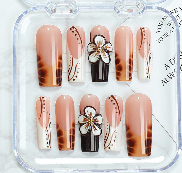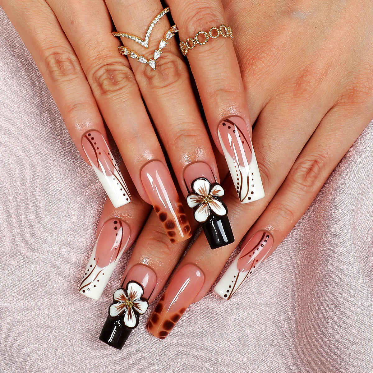 Unleash fierce femininity with Wild Blossom press-on nails from Ersa Nails. Featuring bold leopard print blended with soft ombré and 3D floral accents, this handcrafted set perfectly balances wild spirit and delicate beauty. Ideal for trendsetters who love to make a confident, stylish statement.