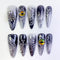Unveil your daring side with Mystic Gaze press-on nails from Glowyshe. Featuring sleek silver metallic lines, delicate butterfly accents, and the captivating “devil’s eye” motif, this design exudes mystery and allure. Perfect for those who want a bold, symbolic look with an edge of elegance.